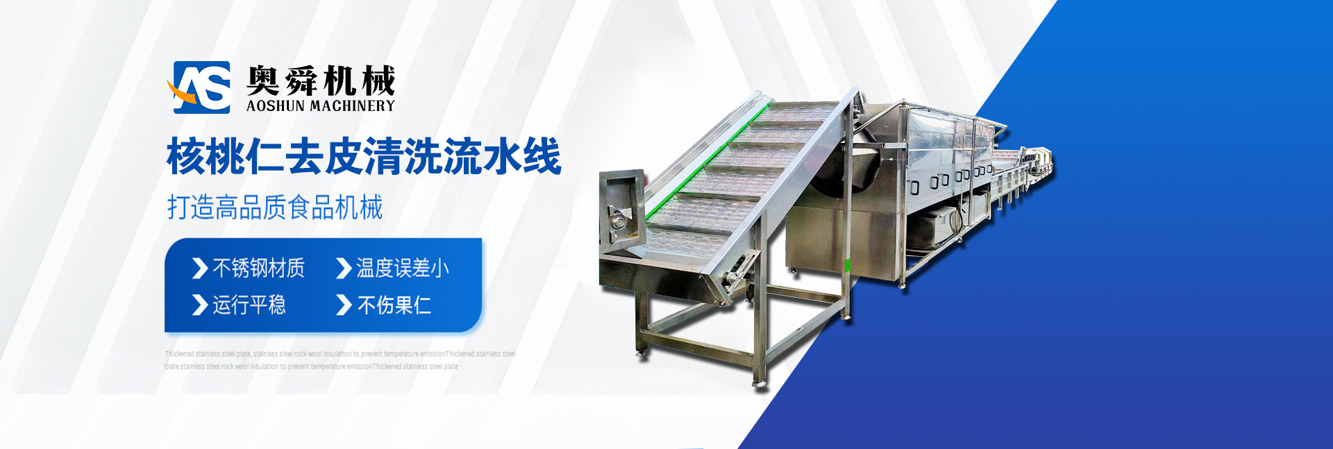 奧舜機(jī)械 【核桃仁去皮機(jī)】打破了核桃仁深加工過(guò)程中的困擾,純物理脫皮方法,專(zhuān)門(mén)針對(duì)核桃仁表皮的沖洗,代替了傳統(tǒng)的化學(xué)泡制去皮,使產(chǎn)品更安全放心,連續(xù)式工作,操作簡(jiǎn)單,去皮率高、破損率低,自動(dòng)化程度高,節(jié)省人工,可配套烘干箱使用。